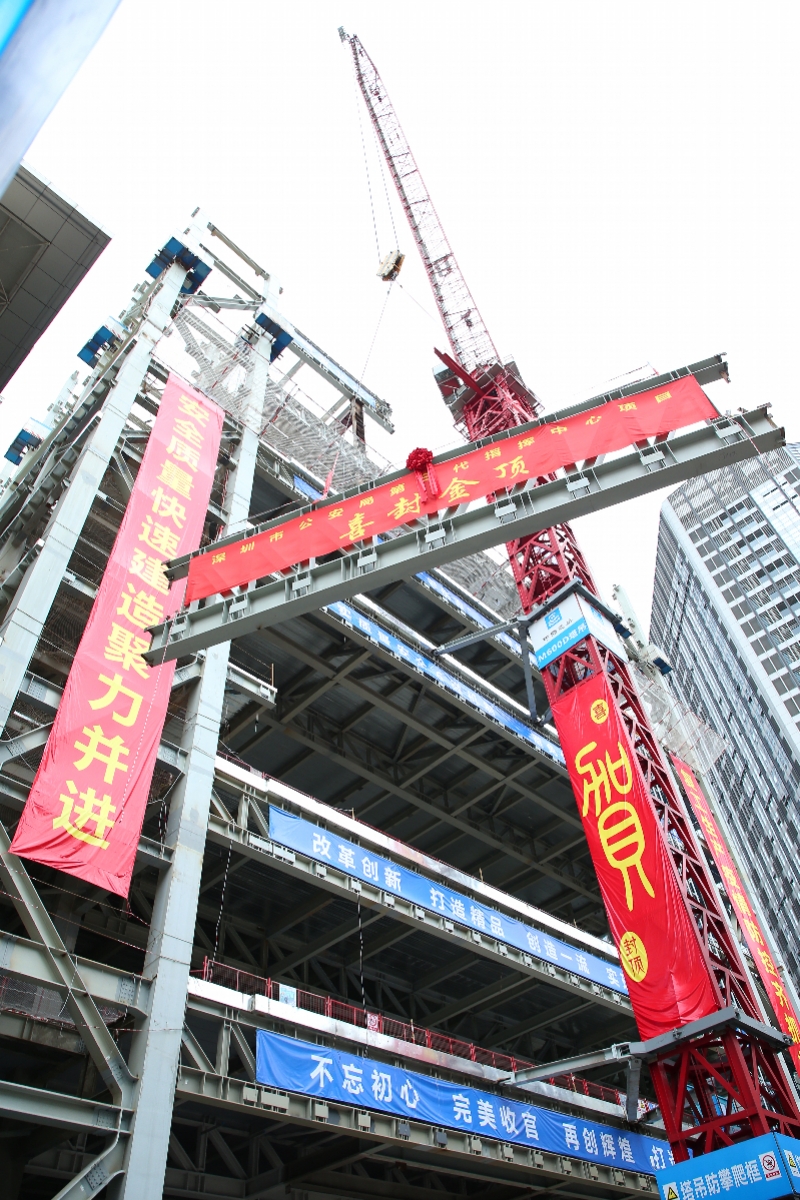 深圳市公安局第三代指揮中心項(xiàng)目主體鋼結(jié)構(gòu)封頂儀式在位于羅湖區(qū)解放路的項(xiàng)目現(xiàn)場(chǎng)順利舉行。