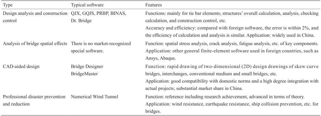 表2 中國自主研發(fā)的計算機(jī)輔助設(shè)計(CAD)和橋梁分析軟件