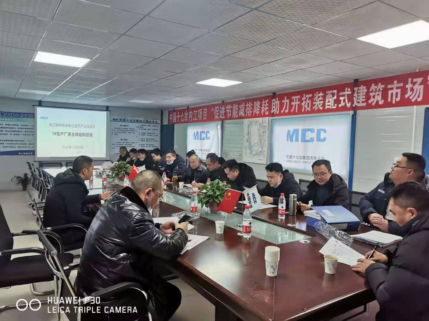 2020年12月29日,內(nèi)江鋼結(jié)構(gòu)裝配式建筑產(chǎn)業(yè)園項目主體結(jié)構(gòu)驗收工作在項目部進(jìn)行。參加驗收的有施工總承包單位、監(jiān)理、設(shè)計院、勘測單位及業(yè)主方,首先,各參建單位深入施工現(xiàn)場對建筑物主體結(jié)構(gòu)進(jìn)行觀感質(zhì)量檢查、進(jìn)行實體檢測、測量等,隨后,各參建單位匯集在辦公室,對工程的施工質(zhì)量發(fā)表意見。